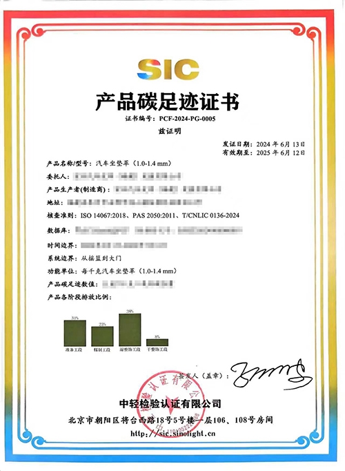中轻检验颁发的《产品碳足迹证书》