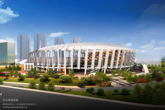 该体育场项目位于中环汶水路和南北高架交界处,占地面积92.7亩,建设面积71291㎡,是融合了综合体育馆(5600座)、足球?。?span lang="EN-US">750座),篮球馆、游泳池、网球馆、乒乓球馆等多个场馆,兼顾了赛事演艺、全民健身、配套和训练等功能的大型综合体育中心。整个场馆最为引人注目的就是在屋顶建造的16253㎡的体育场,这是全市首个室外屋顶标准体育场,位于离地13米的高空。