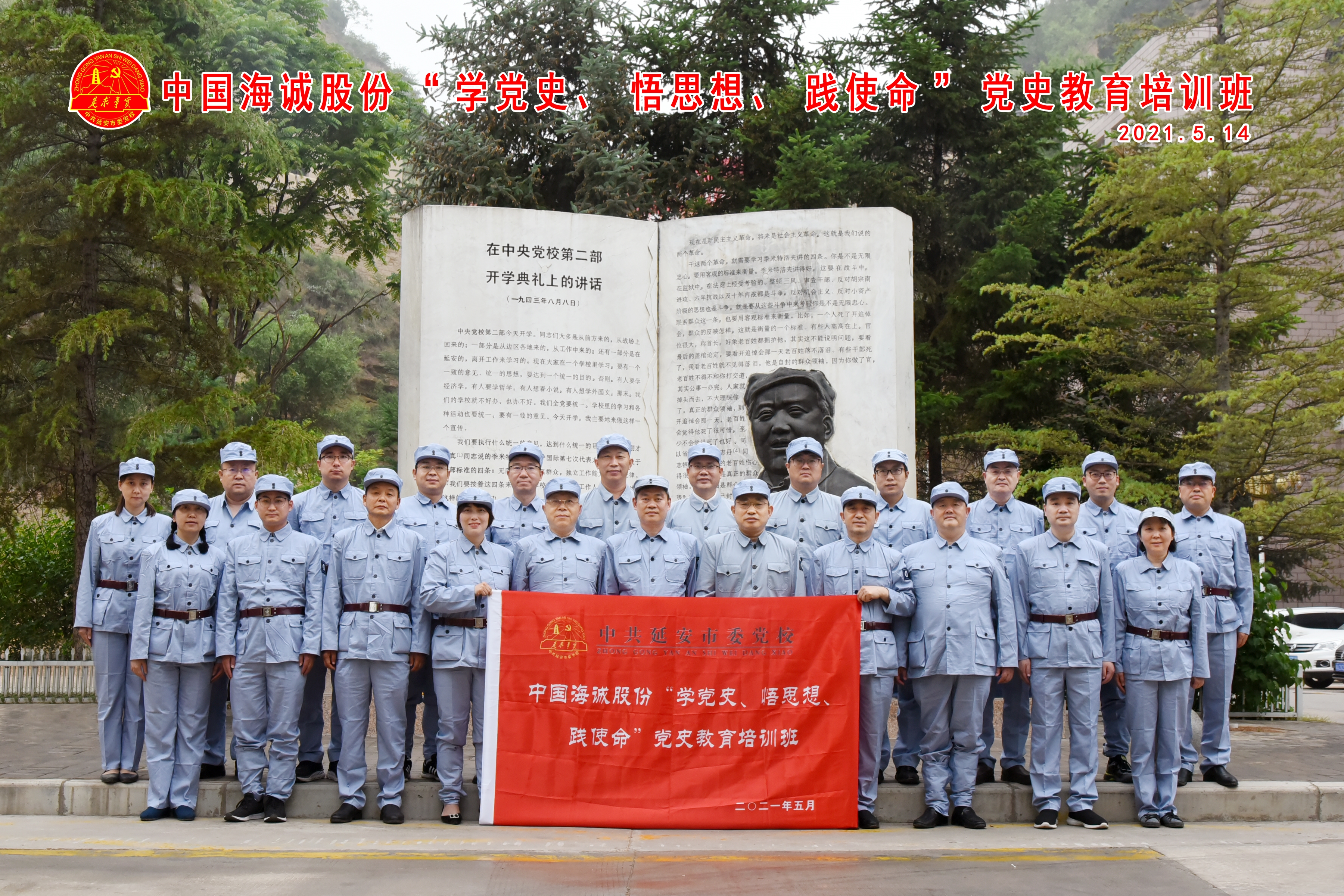 为进一步坚定理想信念,传承红色传统,接受革命洗礼,5月13日至15日,海诚股份领导班子、所属西安公司领导班子及党员骨干20余人在革命圣地延安举办“学党史、悟思想、践使命”党史教育专题培训班。
