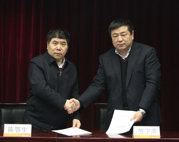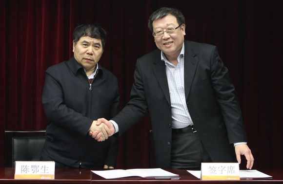 集团党委书记、董事长陈鄂生与皮革院党委书记杨承杰签订党风廉政建设责任书