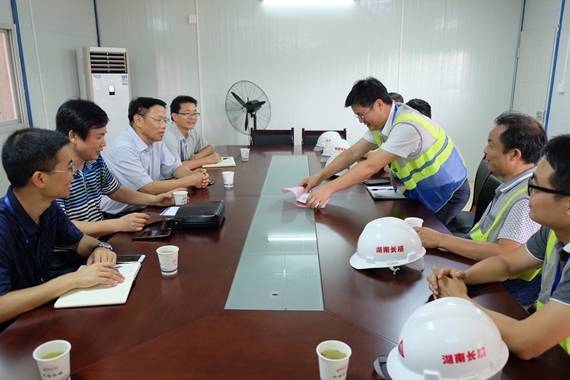 7月4日,气温陡升,酷暑难耐。长沙公司党委副书记、副总经理、长顺公司董事长潘祥明等一行代表工程公司领导层、公司工会到达长沙地铁3号线、浏阳河人行景观桥等抗洪救灾前线项目部进行慰问。受暴雨影响,长沙多处封路,车辆禁行,潘总等顶着烈日徒步数里走进各工程现场,检查防汛措施落实情况。