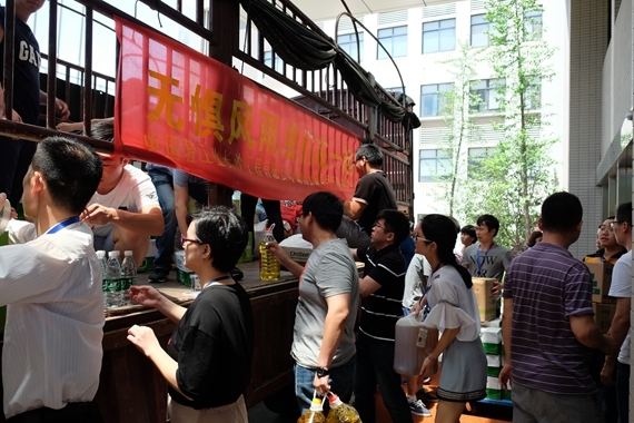 7月6日早,还未到上班时间,员工们已早早准备好生活物资,等候在捐赠场地??购橛⑿鄢绺撸凭偃巳丝晌?。没有任何仪式,没有任何渲染,一股暖流在公司内无声流淌。11时,募捐顺利结束。12时,员工已配合将募集物资满满装了一车。13时,运送车辆驶入了乌山街道白沙垸灾区,途经几处塌方路段,安全送至灾民安置点。15时,物资在灾民安置点卸货完毕,并被分发到灾民手里。短短22小时,从获悉灾情,到一场千人募捐活动的爱心成果就已精准抵达灾民手中,扶危济难同样是一场战役。