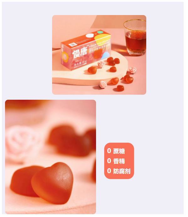 “慢唐”系列产品由保利中轻所属中国食品研究院自主研发生产,采用抗糖黑科技:低GI栅栏技术,有效缓升糖、减少血糖波动、提供持久饱腹感,同时添加透明质酸(玻尿酸)、天然维生素,增强皮肤新陈代谢,从根源解决皮肤爆痘、干燥、衰老等问题。