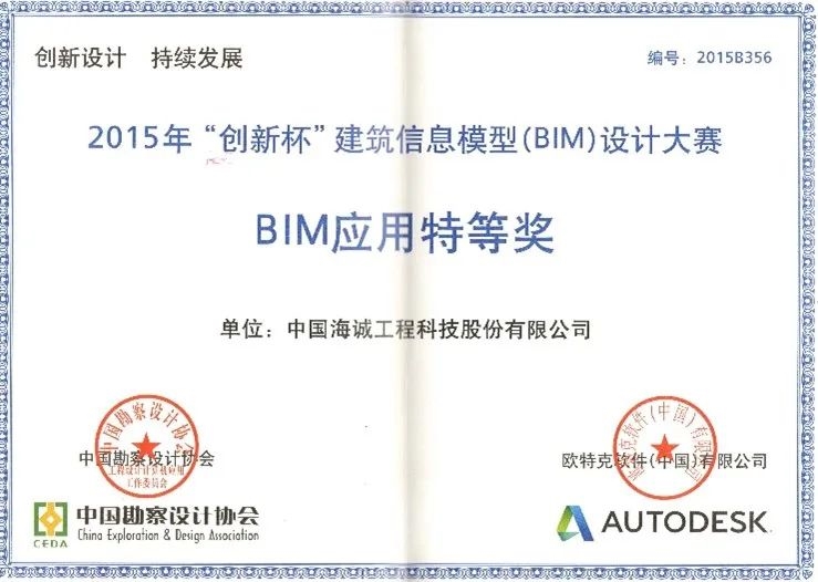2012年,中国海诚中标当时国内最大的主题乐园项目,承担了超过园区40%面积的设计任务,设计团队大胆创新,改变常规的设计经验和工作习惯,采用三维图形进行仿真模拟,利用BIM技术防止各个专业间因为“打架”而造成的设计变更,有效节约了工程造价 。凭借BIM在该项目中的出色应用,获得中国2015“创新杯”建筑信息模型(BIM)应用设计大赛特等奖、世界主题娱乐协会(TEA)颁发的“杰出成就奖—景点”奖杯。