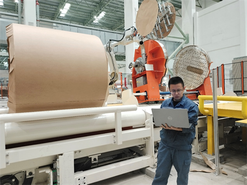 在马来西亚玖龙项目的纸卷输送包装车间,一位工作人员正在通过电脑连接生产线进行调试。他注意力高度集中,根据纸卷包装运行状态有条不紊地调整着各项参数,很快地,一个个纸卷像听懂了他的命令一般,整齐有序地依次排队入库……