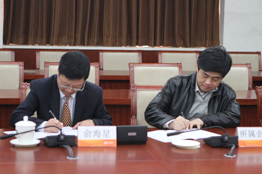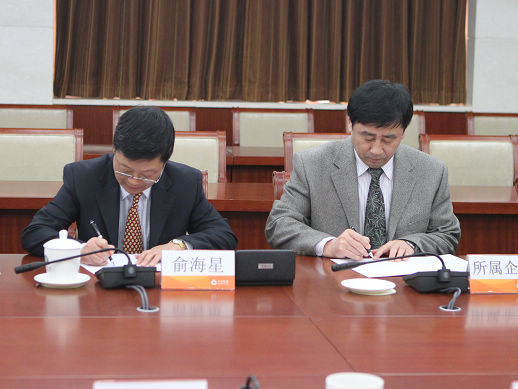 集团公司总经理俞海星与日化院院长王万绪签订任务合同书