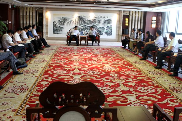 8月8日,中轻集团党委书记、董事长陈鄂生在中轻大厦会见了荆门市委书记别必雄一行。